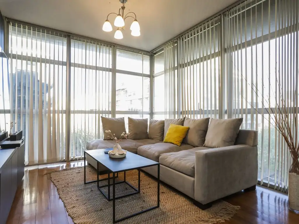 Se ingresa a la unidad al living con amplias dimensiones y excelente circulación, con ventanales a la calle de piso a techo, permitiendo el ingreso de luz y ventilación, con acceso al balcón. -