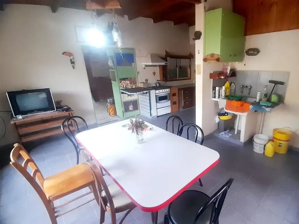 La casa está distribuida en dos cómodas habitaciones mas una habitación pequeña, un baño completo y una cocina comedor amplia con instalacion de lavarropas, cuneta tambien con un espacio de parrilla y horno profesional empotrado, un galpon para guardados multiples y una cochera privada para un vehículo.