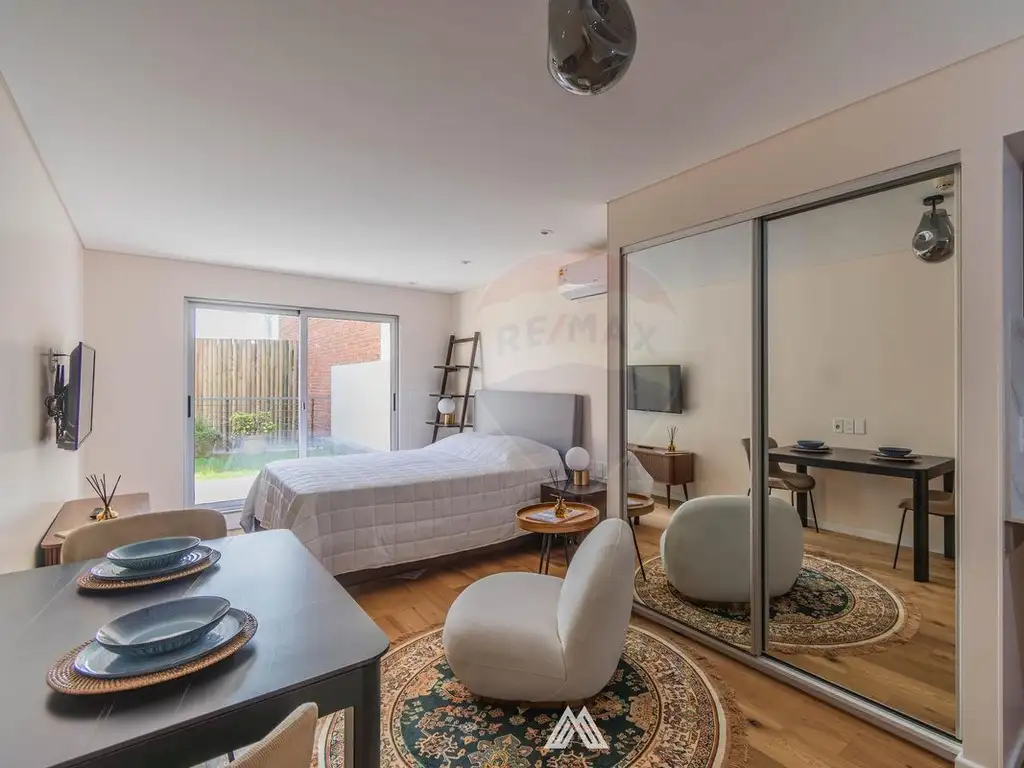 La unidad presentada aquí es la 106 en tipología de monoambiente con una superficie interna de 34m2 y 18m2 de superficie abierta (jardín).
