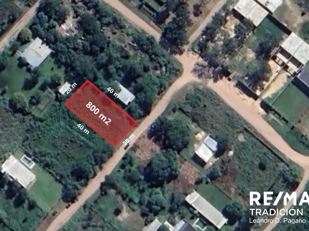 - Cada terreno tiene una superficie: 800 m² (20 m x 40 m)