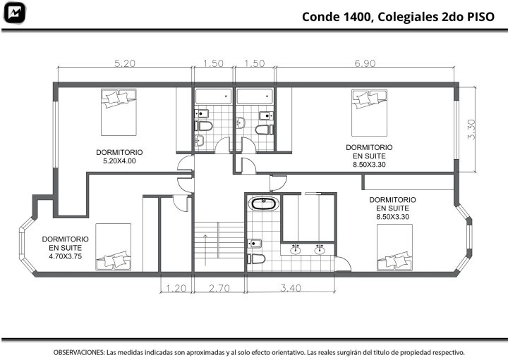 En el 2do piso encontramos 3 Suites y 1 Master Suite, con aires acondicionado y placard empotrado (La habitación principal posee Yacuzzy y vestidor). Baño completo con hidromasaje. Uno de los cuartos destinado a sala de cine/música recubierta con paneles acústicos. Todas las habitaciones, al igual que las escaleras poseen parqué de roble claro. Las baranda de las escaleras son de balustre torneado