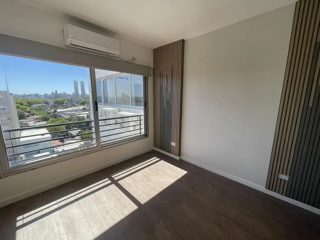 Al ingresar, se encuentra un amplio living comedor que se integra parcialmente con la cocina equipada con horno, anafe y termo eléctrico, además de contar con conexión para lavarropas bajo mesada. El dormitorio principal destaca por su amplio ventanal con gran luz natural. Un placard en el pasillo de distribución optimiza el almacenamiento.