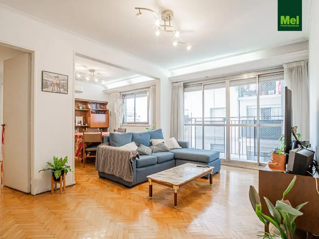 El departamento originalmente era un 4ambientes pero uno de los dormitorios fue integrado al living, se puede volver a cerrar eventualmente. Se distribuye ingresando a living-comedor con salida al balcón al frente. Por otra parte, tenemos cocina independiente.
