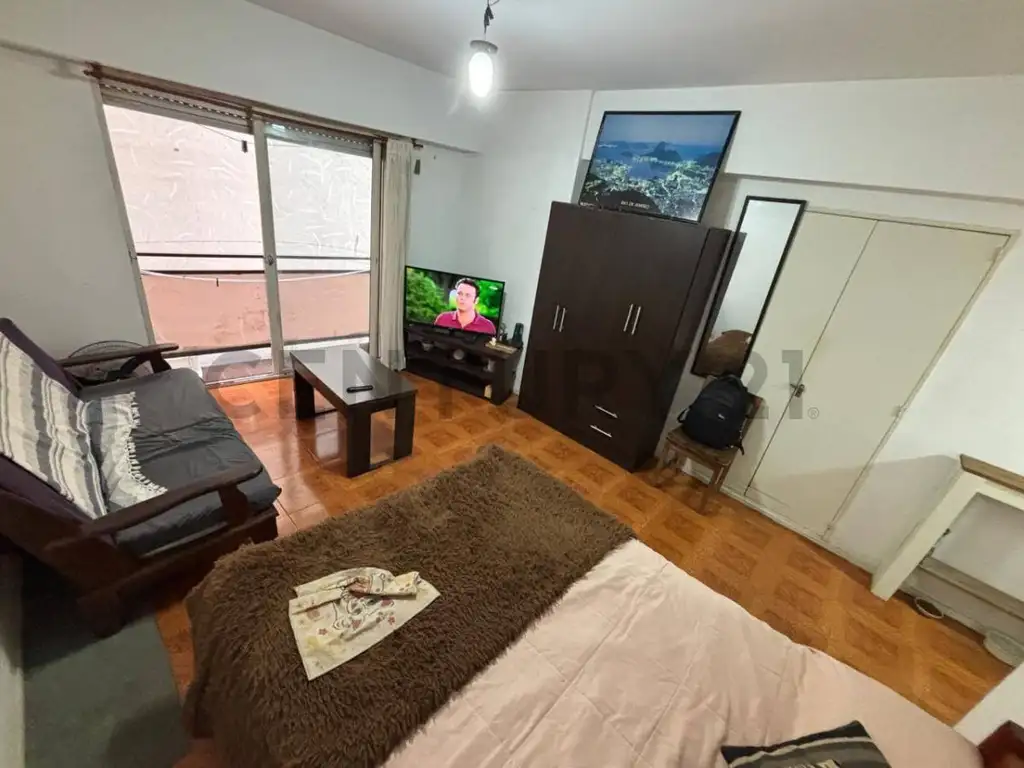 La propiedad posee cómoda distribución, 1 baño completo. Cocina integrada y un gran ventanal con pequeño balcón que aporta luz natural y ventilación durante todo el día. Tiene un placard de guardado que brinda una solución práctica de almacenamiento.