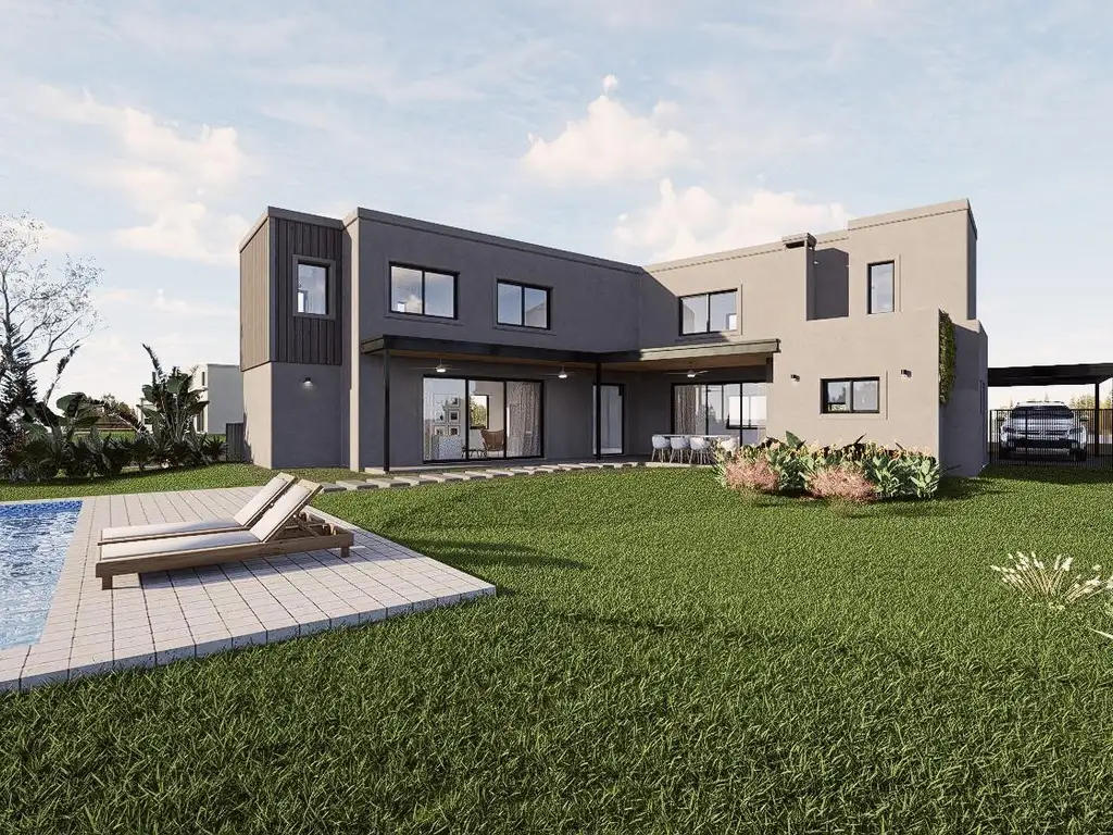 Esta propiedad destaca por su imponente diseño de líneas modernas y volúmenes definidos, donde la sobriedad del gris se fusiona con la calidez de los detalles en madera y un paisajismo cuidadosamente integrado.