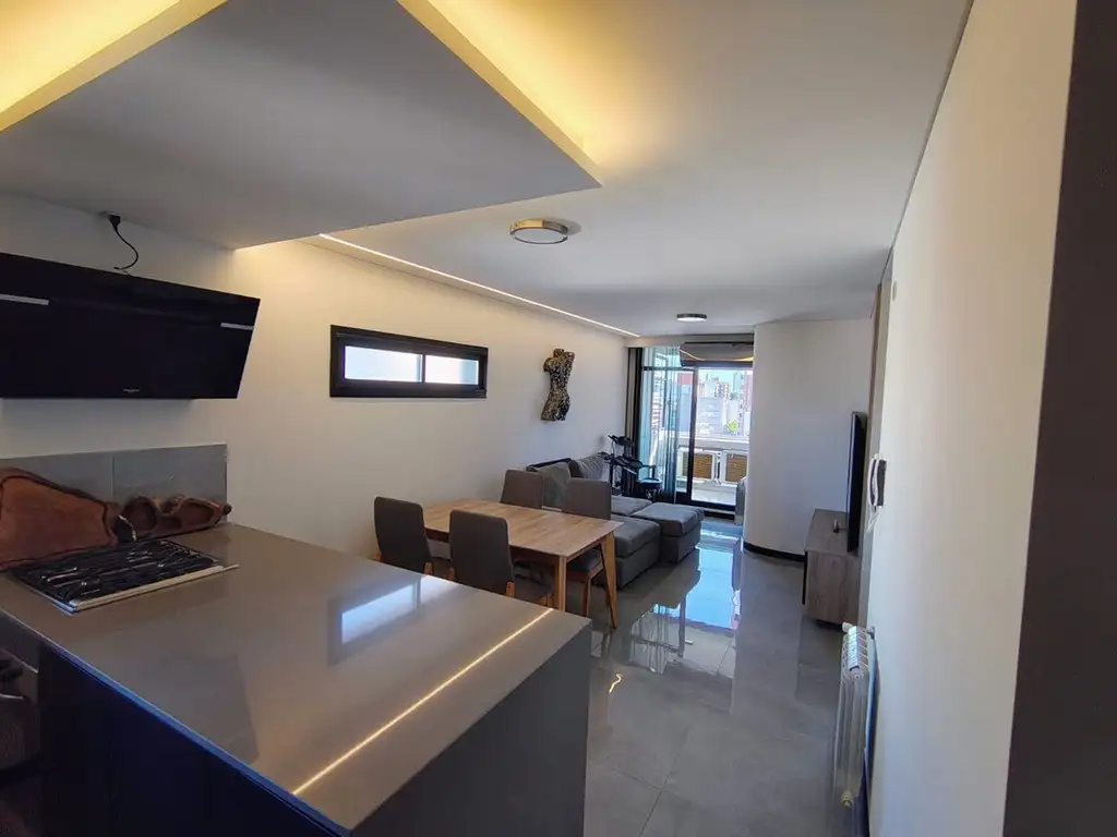 La unidad se destaca por su diseño moderno y funcional, con ambientes amplios y muy luminosos. Cuenta con un living-comedor integrado con salida al balcón, cocina moderna con isla y excelentes terminaciones. Los pisos de porcelanato y la iluminación LED embutida aportan un estilo contemporáneo y elegante.