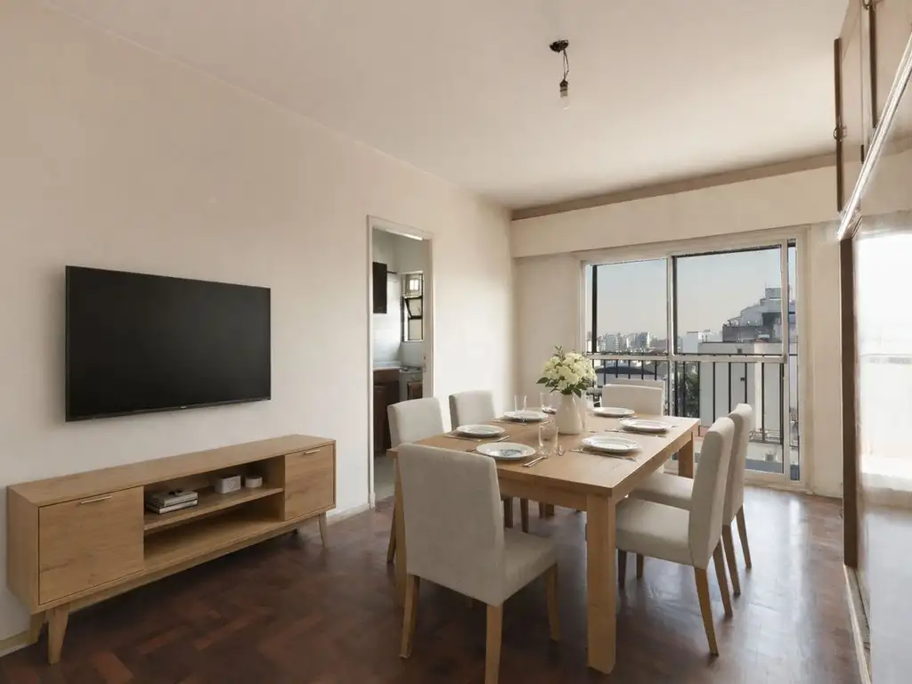 Luminoso y amplio departamento de dos ambientes, ubicado en un piso alto, con todos sus ambientes orientados al exterior, lo que asegura una gran entrada de luz natural durante todo el día.