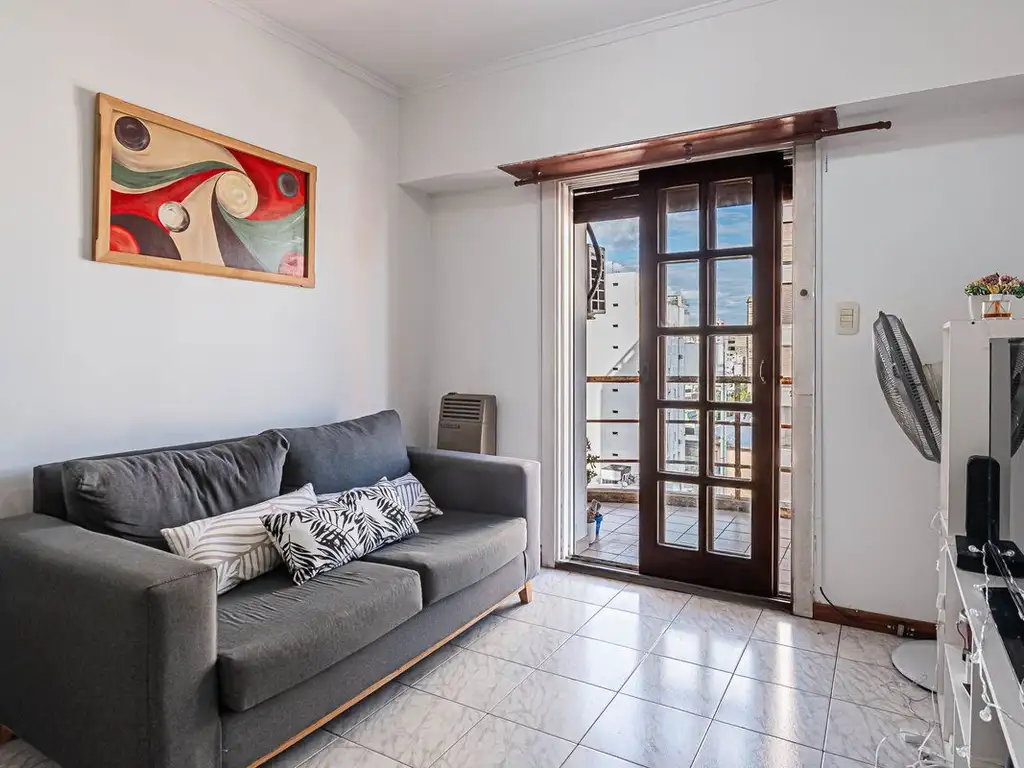 Luminoso 1 dormitorio en piso alto con balcón al frente