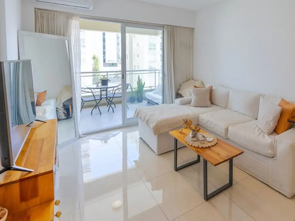 Al ingresar, nos recibe un amplio y luminoso living comedor, con salida directa al balcón a través de un gran ventanal que aporta excelente luz natural durante todo el día. El balcón es cómodo y funcional, con vista abierta hacia el interior del complejo y su pileta, generando una agradable sensación de amplitud y privacidad.
