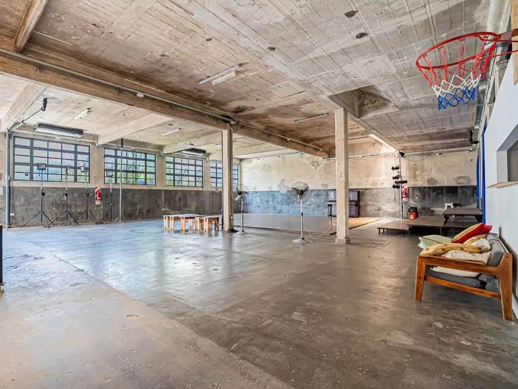 La sala cuenta con 3 baños: baño para personas con discapacidad, cocina, espacio de guardado. Conexión eléctrica trifásica y dos aires acondicionados inverter de 18.000 frigorias, instalación eléctrica nueva. Todo preparado y listo para trabajar y vivir en un mismo lugar. Excelente altura y versatilidad. Múltiples usos. IDEAL TEATRO, ESTUDIO CREATIVO, PRODUCTORA, Estudio de fotos, hostel, restaurante, vivero, librería con café, SHOWROOM O COWORKING, etc.
