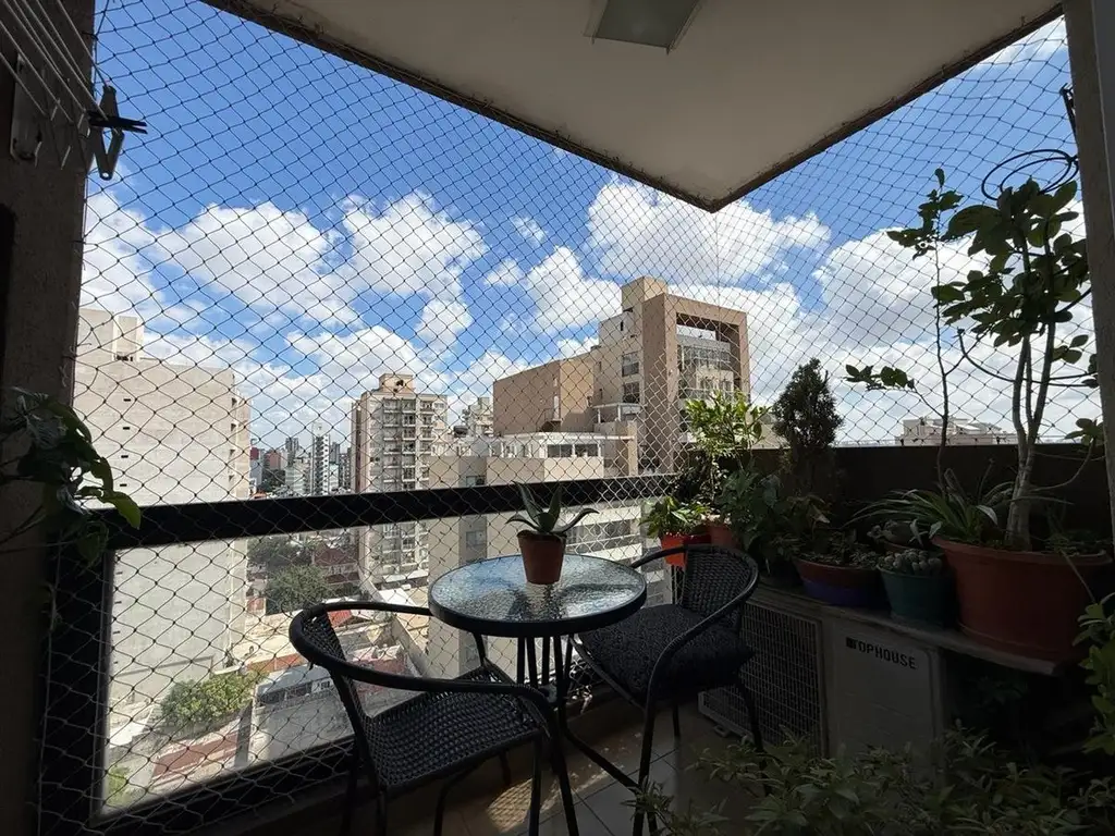 Balcón al frente con parrilla a estrenar y la hermosa vista que brinda un decimo piso.