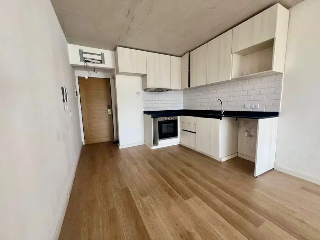 La cocina, completamente amoblada, ofrece una solución práctica para quienes valoran la eficiencia sin renunciar al confort. El baño completo complementa el diseño con terminaciones modernas y funcionales.