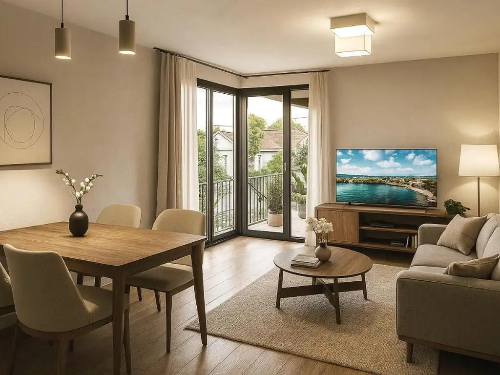 o Luminoso living comedor con salida directa a un balcón interno que ofrece vistas al jardín central del desarrollo.