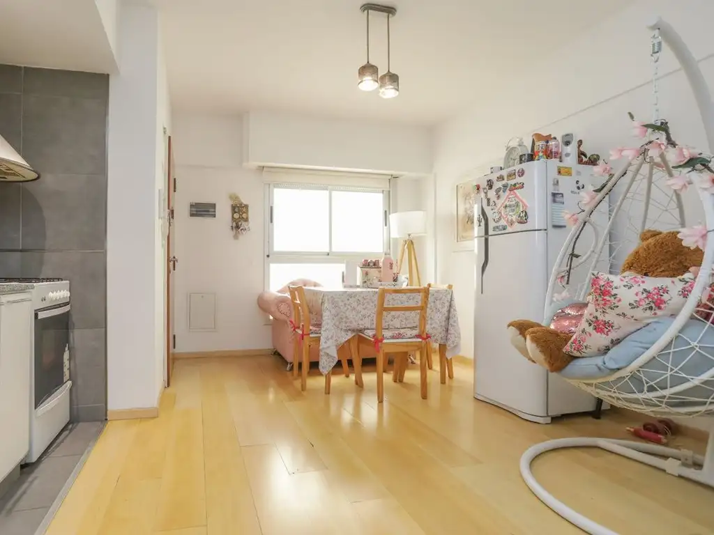 La unidad es un monoambiente funcional, con cocina integrada, baño completo y muy buena luminosidad. Su distribución permite optimizar el espacio y hacerlo atractivo tanto para alquiler tradicional como temporario.