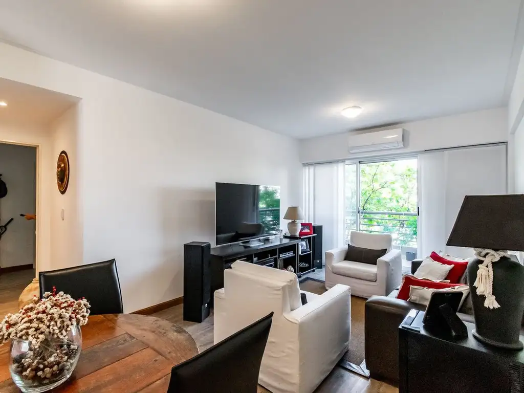 El inmueble cuenta con living comedor con salida al balcón, cocina totalmente equipada con mármol de granito negro, alacenas bajo y sobremesada, y campana extractora. Dispone de dos dormitorios: el principal con vestidor e interiores de placard completo, y el segundo con interior de placard.
