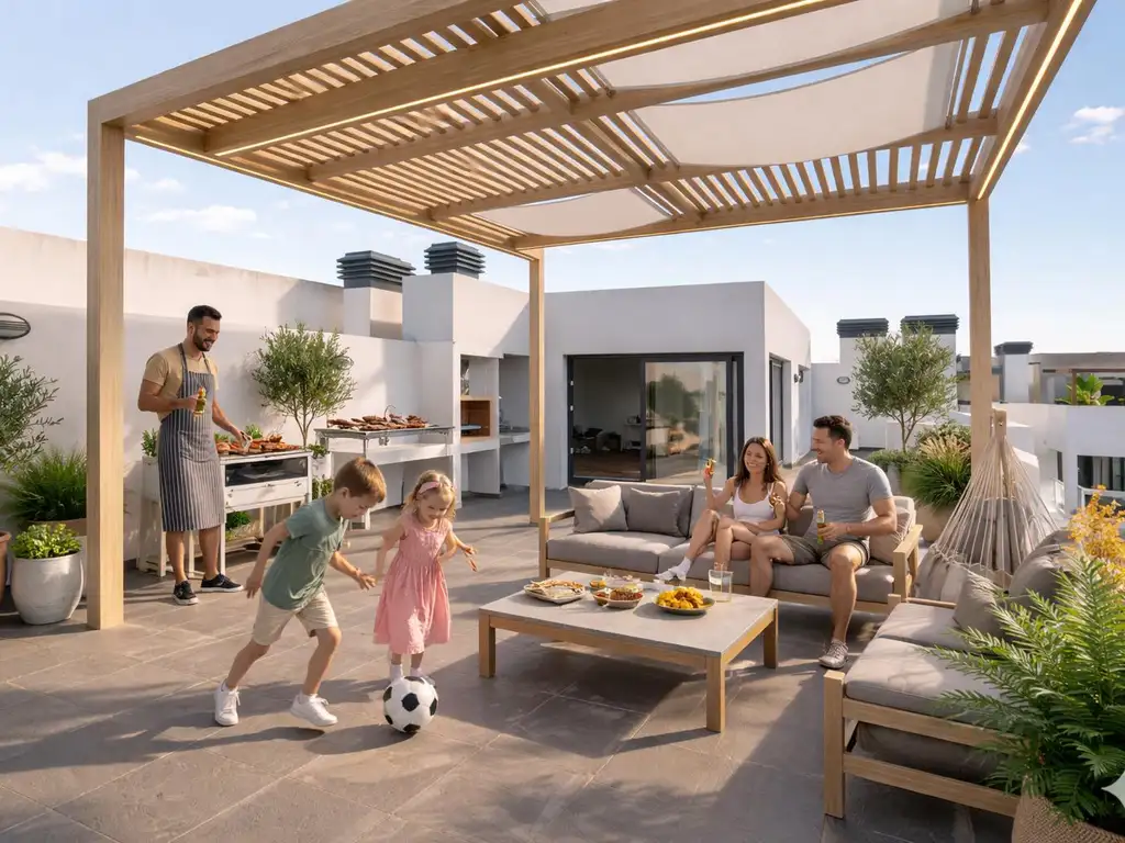 El departamento cuenta con una amplia terraza privada, ideal para armar un espacio de relax o esparcimiento, con posibilidad de incorporar pérgola, parrilla y sector de lavado.