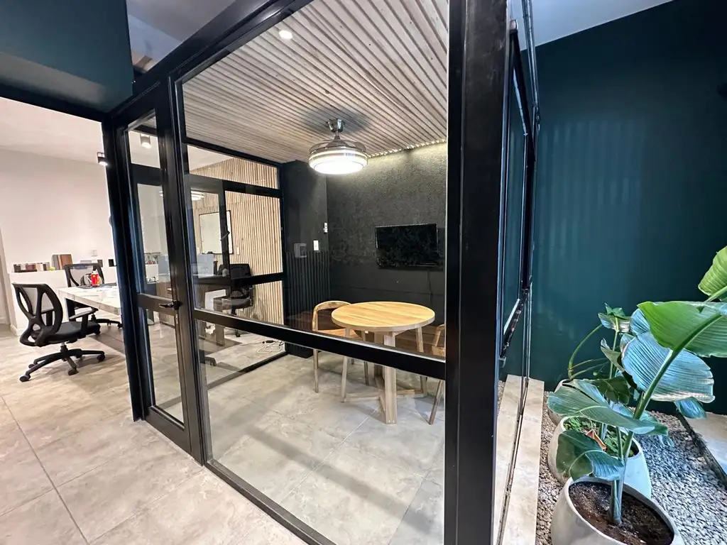 Dispone de aire acondicionado, iluminación moderna, carpinterías con vidrio, rejas de seguridad y acceso independiente desde la calle.