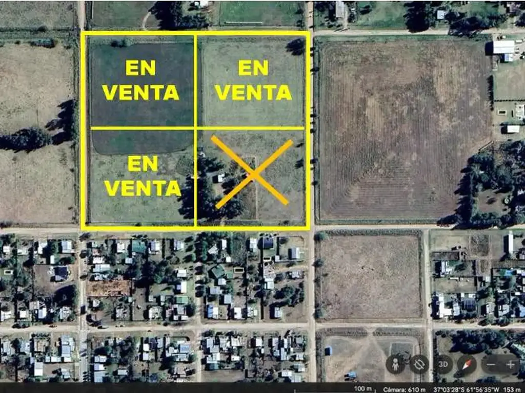 Ubicación lindera al casco urbano, calle por medio, en la Localidad de Huanguelén, Partido de Cnel. Suárez, Pcia. de Buenos Aires (Región Centro Oeste).