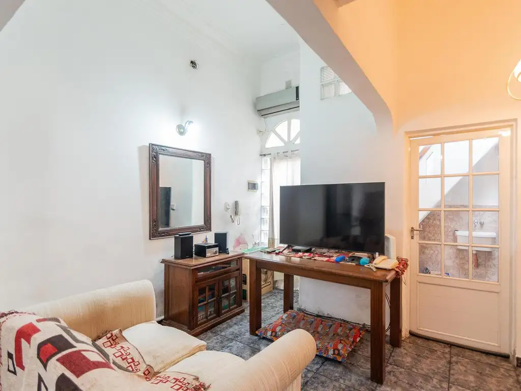 Se trata de un PH desarrollado en planta baja al contrafrente, ubicado en un edificio bajo de solo tres unidades, con ingreso por pasillo común, lo que garantiza un entorno tranquilo y de bajo tránsito. Si bien la propiedad presenta algunos sectores a intervenir, ofrece una gran potencialidad, destacándose especialmente por sus techos altos, que aportan una marcada sensación de amplitud, luminosidad y aire, un atributo muy valorado en este tipo de viviendas. Al ingresar, nos recibe un patio cubierto, actualmente utilizado como lavadero, que funciona como espacio de transición hacia el interior. Desde allí se accede al living comedor con cocina integrada, un ambiente cómodo y funcional. La cocina fue mejorada hace aproximadamente 10 años y se encuentra en buen estado de uso. Desde la cocina se conecta directamente con un patio descubierto, muy soleado y luminoso, que aporta ventilación cruzada y luz natural a los ambientes principales. En la planta baja se desarrollan dos dormitorios y un baño completo. En el sector de ingreso se ubica la escalera que conduce a un tercer dormitorio en planta alta, en estado regular, siendo el espacio que requiere mayor intervención. Este dormitorio cuenta con salida a una terraza propia, amplia, soleada e íntima, ideal para disfrutar del aire libre. Desde esta terraza se accede, mediante una escalera, a una segunda terraza, utilizada tradicionalmente como espacio de tendido.