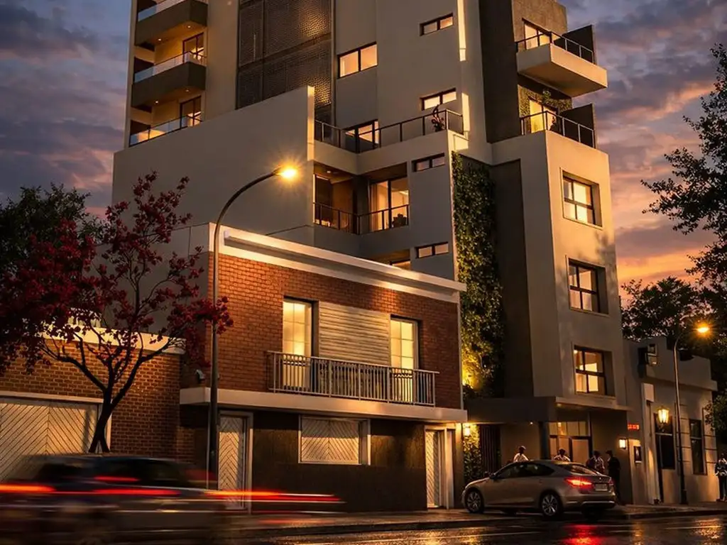 Conformado por quince (15) unidades de un (1) dormitorio (aproximadamente 38 m2 más 4 m2 de galería por unidad), dos (2) unidades de dos (2) dormitorios tipo duplex (aproximadamente 60 m2 más 6 m2 de galería por unidad), un (1) local comercial en planta baja y cuatro (4) cocheras.