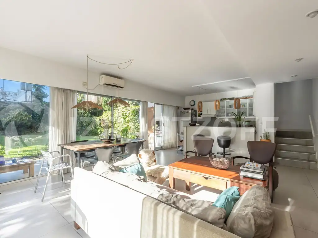 La propiedad dispone de una superficie cubierta de 131 m2, complementada por áreas comunes bien mantenidas. Destaca por su disposición en esquina dentro del complejo con amplio jardín propio, lo que proporciona mayor privacidad y vistas despejadas. Además, tiene 2 cocheras cubiertas, un valioso beneficio en esta ubicación.