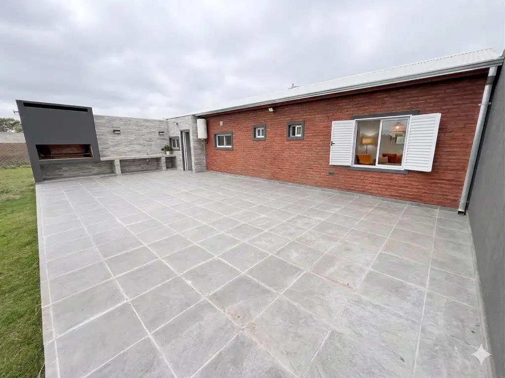 La casa cuenta con 3 dormitorios y 2 baños, además de un luminoso living comedor que se conecta con una galería.