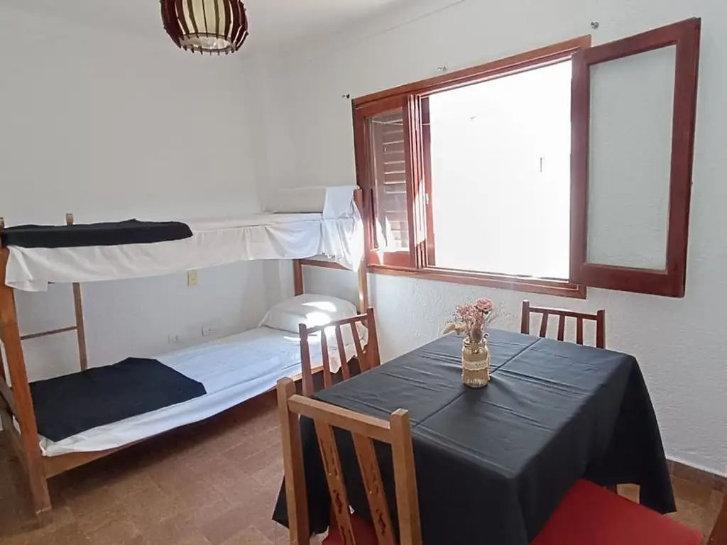 Ambiente principal amplio, con camas, mesa y sillas
