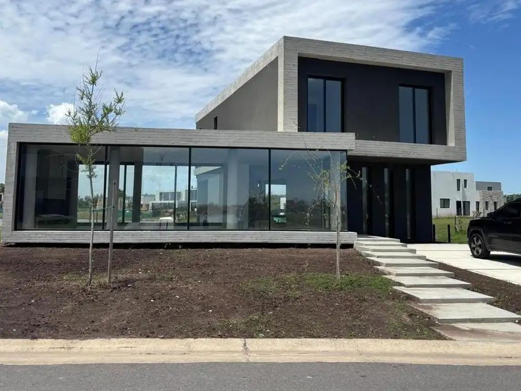 principal en suitte con vestidor, los otros dos comparten un baño, placards con interiores, instalacion de aire en todos los ambientes, aberturas con doble vidrio, muy lindo jardin, con costa y lateral a la laguna, pileta con borde infinito