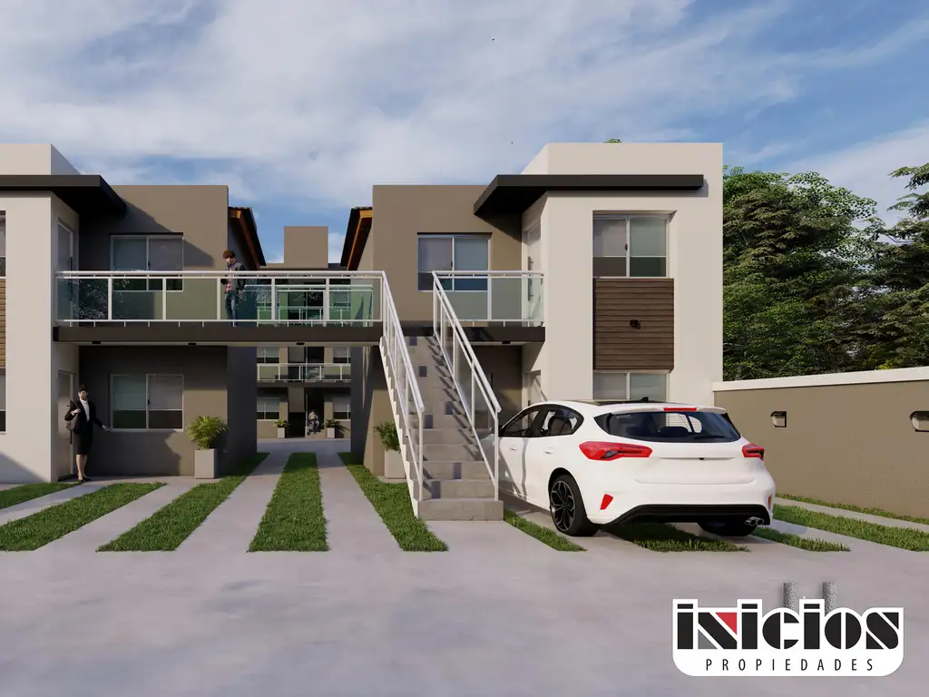 Los departamentos en planta baja ofrecen un generoso living, cocina integrada, dormitorio, baño completo, estacionamiento exclusivo, amplio patio con parrilla y lavadero.