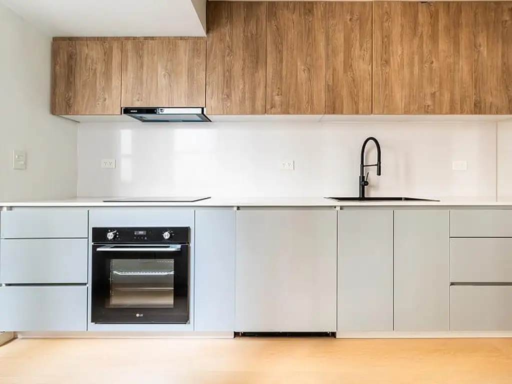 White Storm en baños y cocina . Horno empotrable LG inverter . Anafe Whirpool de inducción. Lavaplatos paneable incorporado. Baño principal íntegramente en Marmol Tundra Greey .