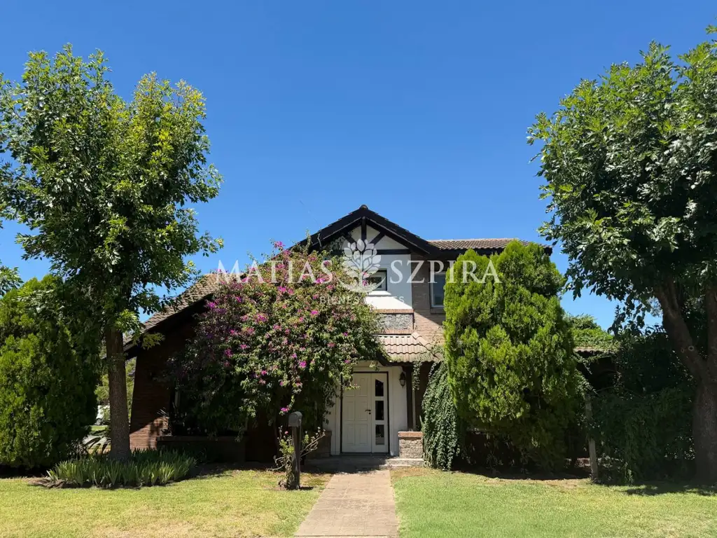 En el exterior:- Hermosa galería con formato en ele- Cochera cubierta para dos autos- Parrilla completa- Gran jardín totalmente parquizado y forestado.