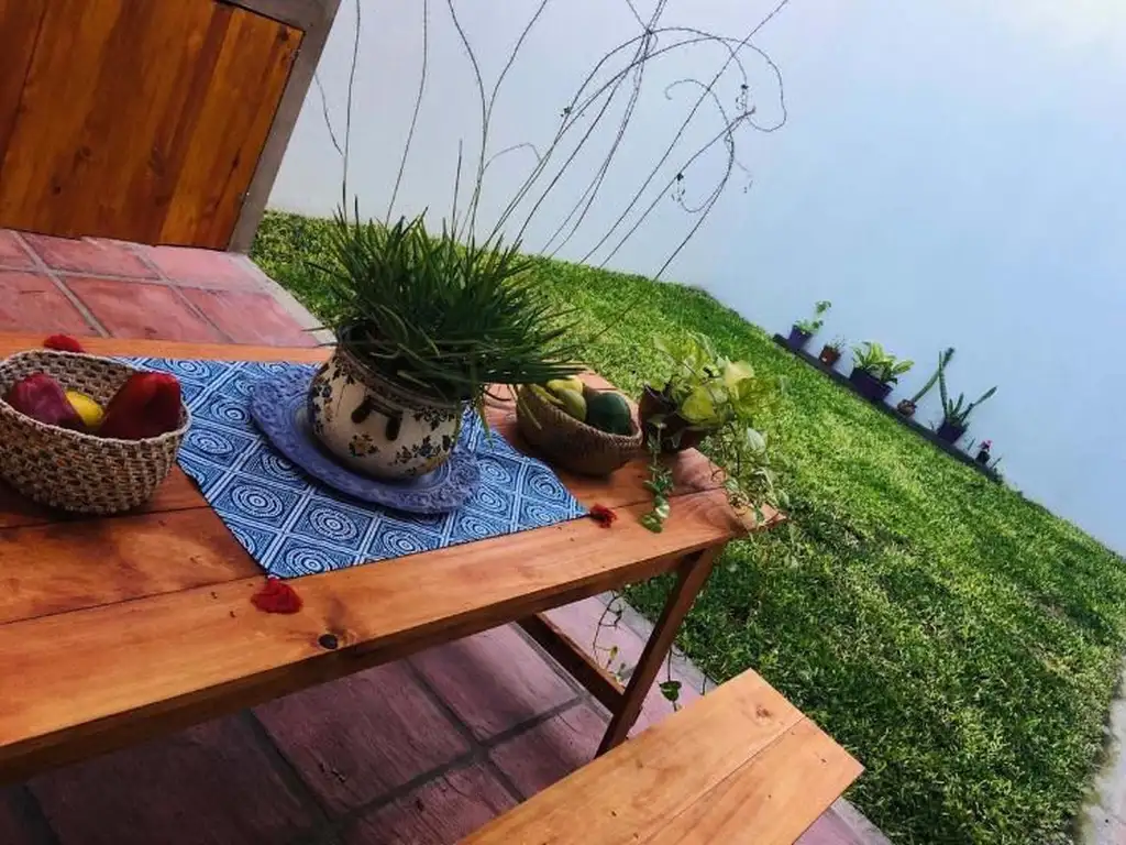 Ancho total del terreno ( fondo) 9 x 5 con galería, parrilla y césped fondo libre.