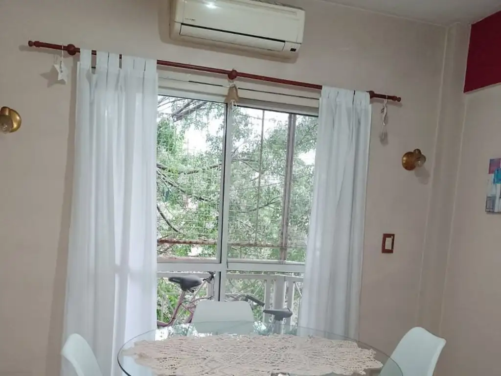 Living comedor con balcon a la calle, pasillo distribuidor con placard, dos dormitorios alfombrados con placares embutidos, grandes y en perfecto estado. Baño con bañera y mampara.