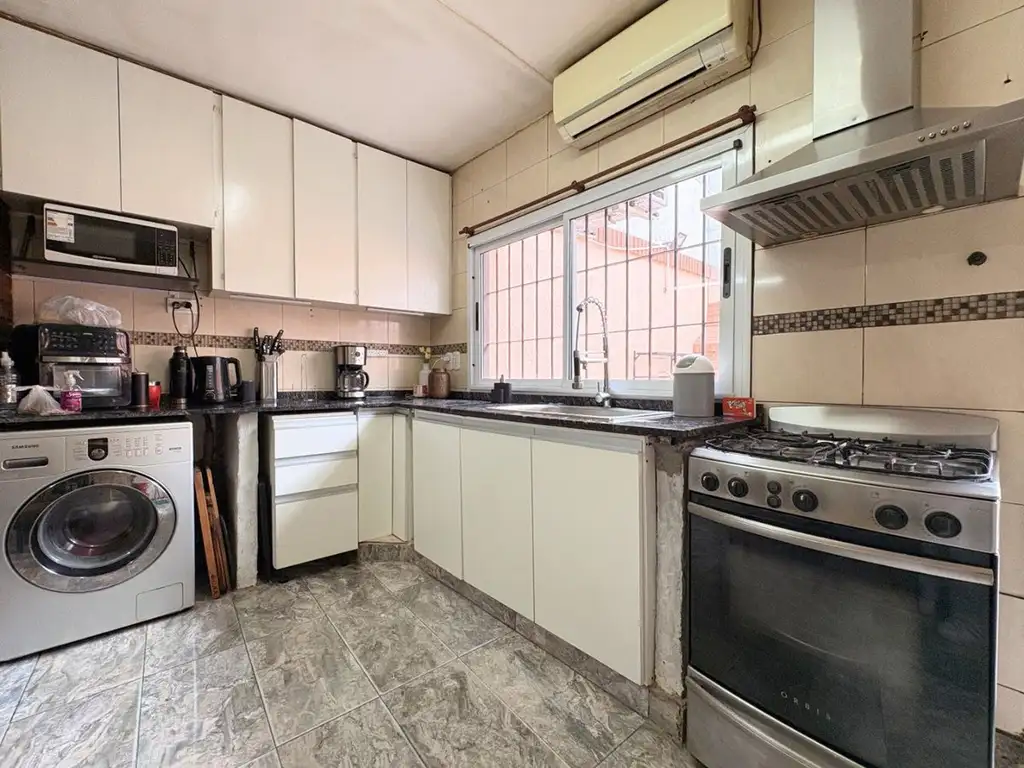 - Cocina comedor equipada con muebles alto y bajo mesada. Cocina a gas, campana extractora y espacio para lavarropas o lavavajillas