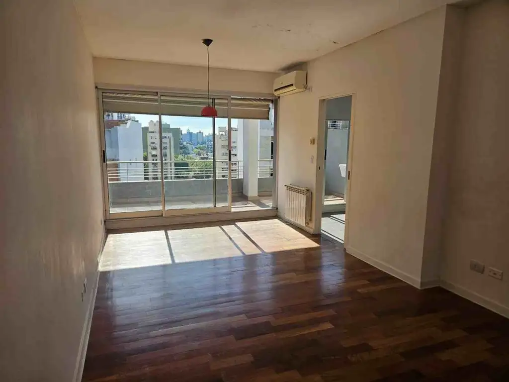 -Living comedor amplio con pisos de madera, con salida a un amplio balcón.