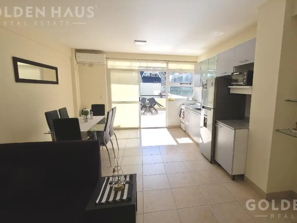 Al ingresar nos recibe un luminoso living comedor con cocina integrada con excelente capacidad de guardado, bajo mesada y alacenas completas, aprovechando al máximo cada espacio. Desde allí se accede al patio privado, donde se ubica el lavadero con gran capacidad de almacenamiento y una parrilla, perfectos para disfrutar al aire libre.