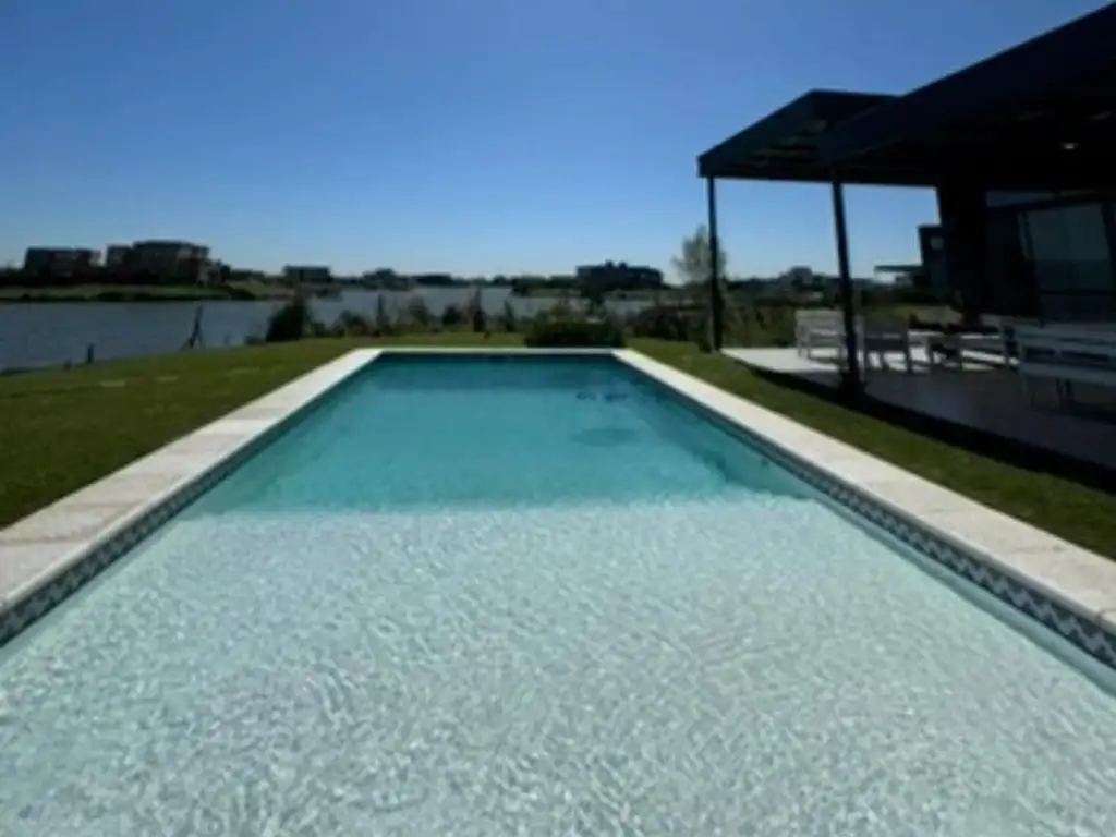 Sus espacios fueron pensados para integrarse con el exterior. El living comedor con cocina se conecta directamente con el jardín y la laguna, generando una sensación de amplitud, luz natural y continuidad.
