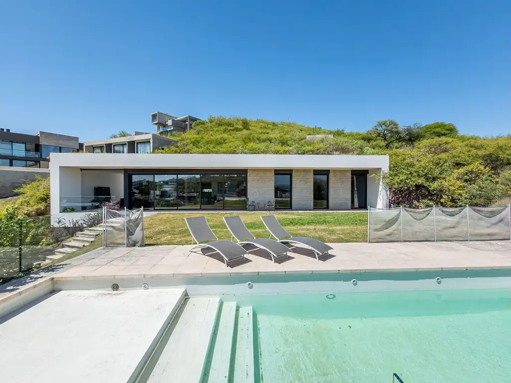 La propiedad se encuentra ubicada sobre una loma, lo que la convierte en protagonista de vistas privilegiadas a las sierras, brindando luz natural y una sensación de amplitud en cada ambiente.