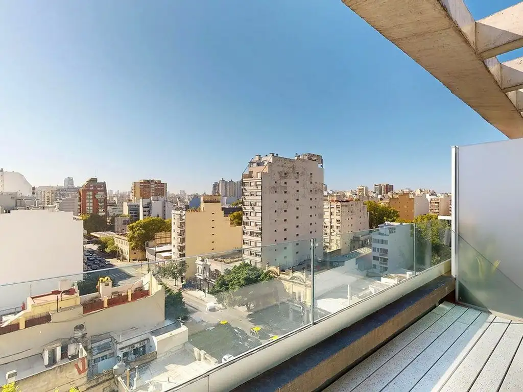 Moderno monoambiente a estrenar en el 10º piso, al frente con balcón. Dispone de 27,5 m² cubiertos más 6m² de balcón, con excelente luminosidad y detalles de categoría: cocina equipada con anafe vitrocerámico y horno eléctrico, portero visor, pisos vinílicos símil madera, aberturas de primera calidad y cielorrasos de hormigón a la vista. Cuenta con agua caliente central y placard con interiores completos.