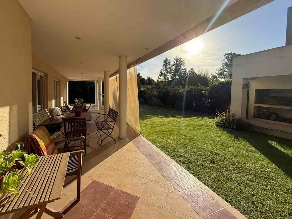 El corazón de la casa se abre hacia una gran galería cubierta, perfecta para disfrutar todo el año, con vista a un parque arbolado que brinda privacidad y un entorno único.