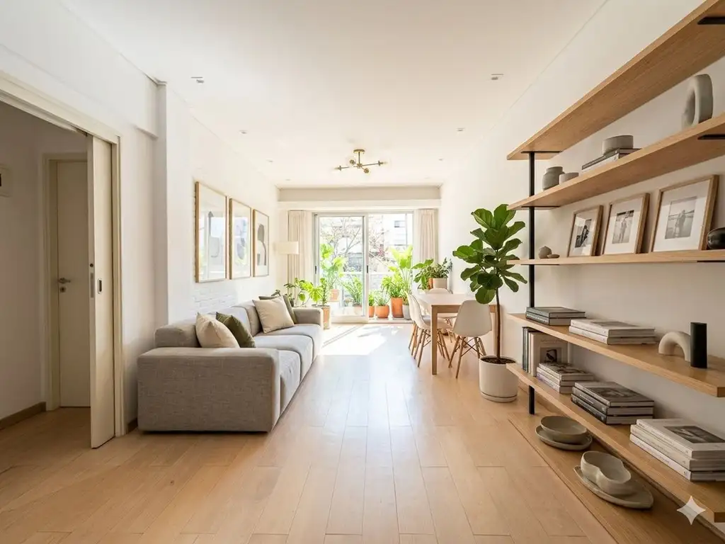 Al ingresar por la entrada principal, nos recibe un amplio living comedor de generosas dimensiones, pisos de vinilo y salida a un balcón al frente, otorgando ventilación cruzada y luz natural.