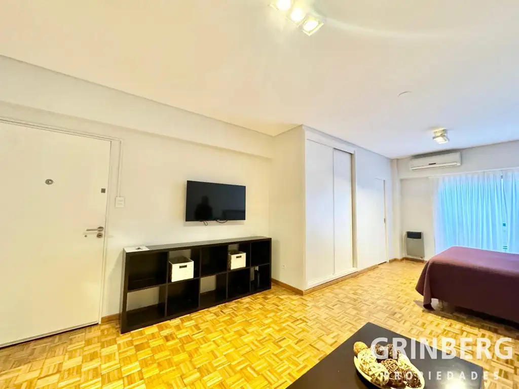 Amplio monoambiente con cocina independiente.