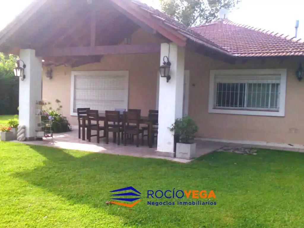 Dos habitaciones que comparten un baño completo, habitación principal en suite. Quincho vidriado con parrilla, cocina, bacha, espacio de guardado y amplio estar. Lavadero cerrado y espacio para guardado de varios vehículos. La propiedad cuenta con un amplio parque totalmente forestado y una piscina de ..