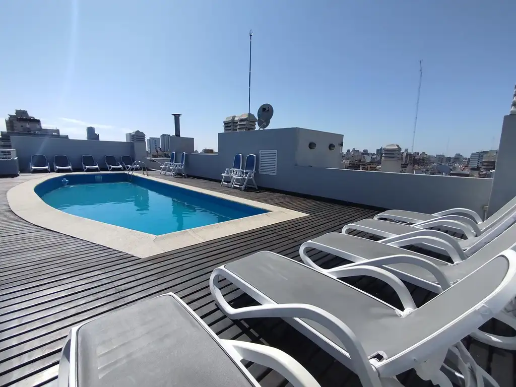 Excelente altura con balcón aterrazado, muy buena luminosidad y vista panorámica, 60,22m2. Living y Comedor con roller black out, Con salida a Balcón Aterrazado con posibilidad de parrilla propia. Dormitorio con roller sreen, persiana y mosquitero, con salida al balcón aterrazado. Amplio Baño completo. Cocina con barra americana que también ventila al frente. Aire acondicionado frío y calefacción central por losa radiante. Grupo electrógeno. Encargado con vivienda, ayudante, personal de limpieza y seguridad 24hs por totem. Garita con recepción. Dos amplios ascensores uno de ellos para 12 personas. Aysa incluido por expensas.
