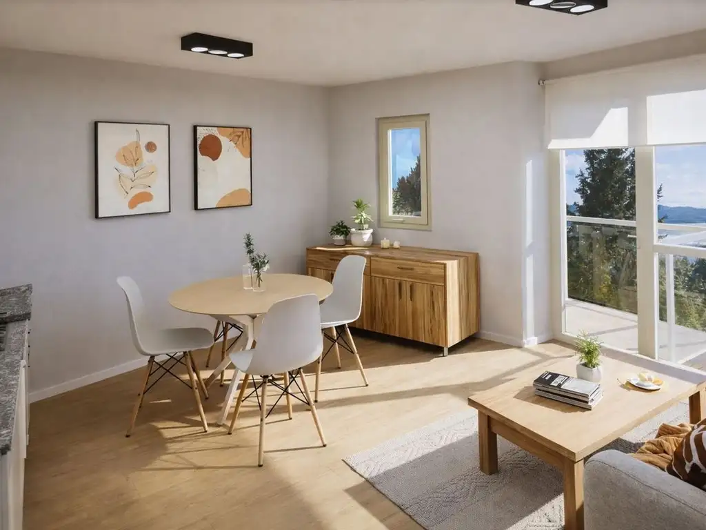 Monoambiente en pozo de 36 m², con amplio balcón y un gran ventanal de frente completo que regala una vista abierta e inigualable: desde lo alto del barrio Jardín Botánico, se aprecia el Lago Nahuel Huapi de punta a punta y el imponente marco de montañas que lo rodean.