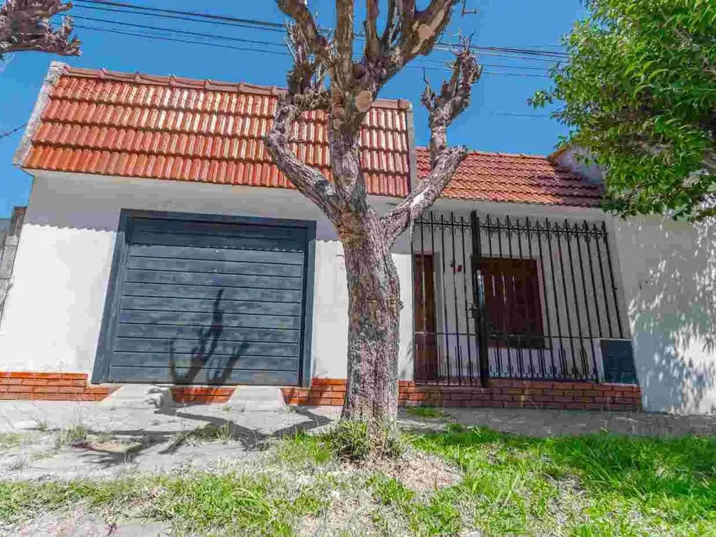 Casa al frente amplia con dos dormitorios, cocina comedor, baño, cochera, terreno que tiene construido 5 cocheras y un amplio local en esquina.