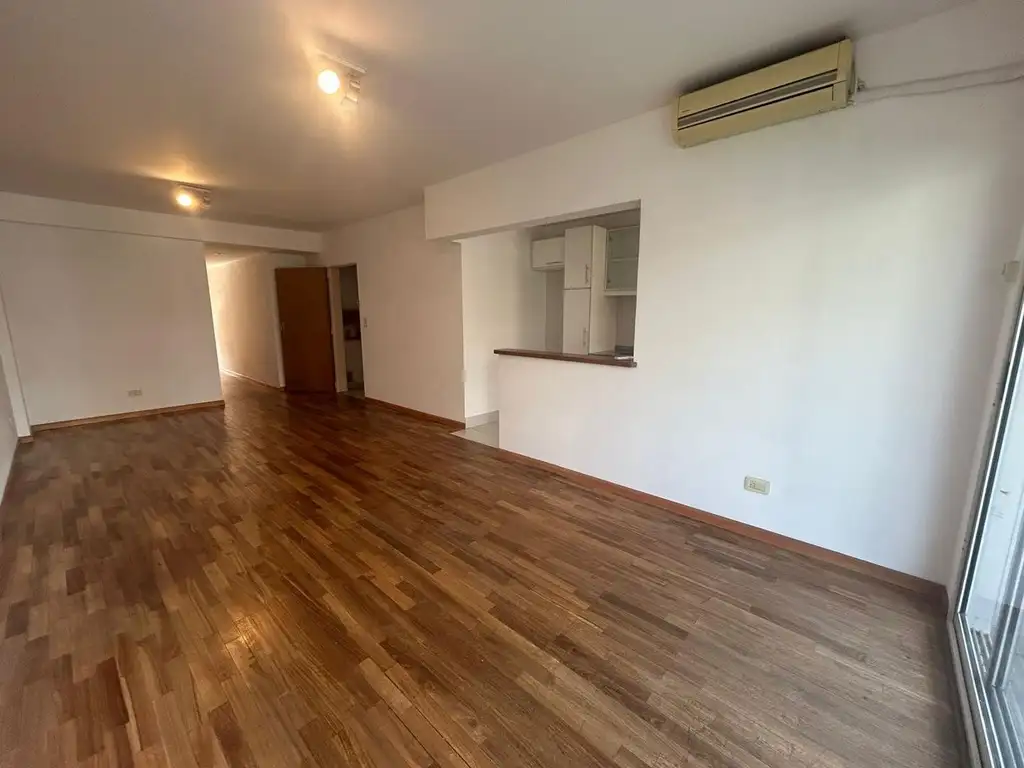 LIVING 3.4 x 7.35 CON AIRE ACONDICIONADO SPLIT .PISOS DE PARQUET. COCINA 3,8 X 1.6 CON BARRA Y LUGAR PARA LAVARROPAS Y HELADERA. MUEBLES DE ALTO Y BAJO MESADA Y VENTANA A LA CALLE
