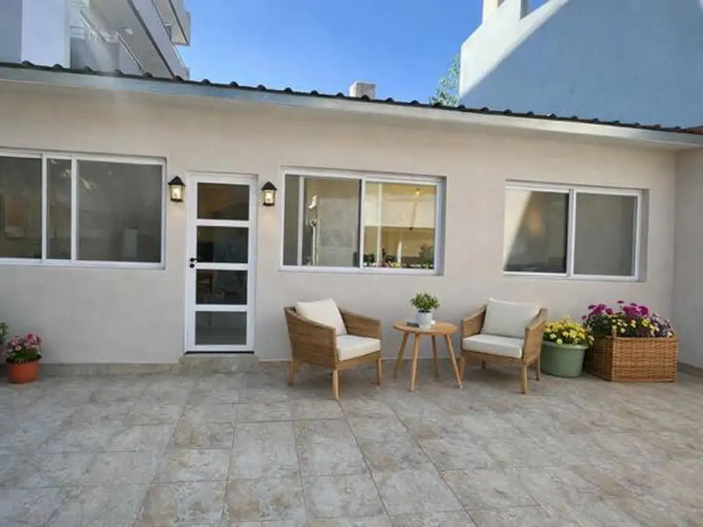 En el exterior se desarrolla un patio que conecta con una segunda unidad independiente tipo dos ambientes de 43 mtrs, actualmente en proceso de terminación (faltan revestimientos, cocina y baño), lo que permite adaptarla según distintas necesidades.