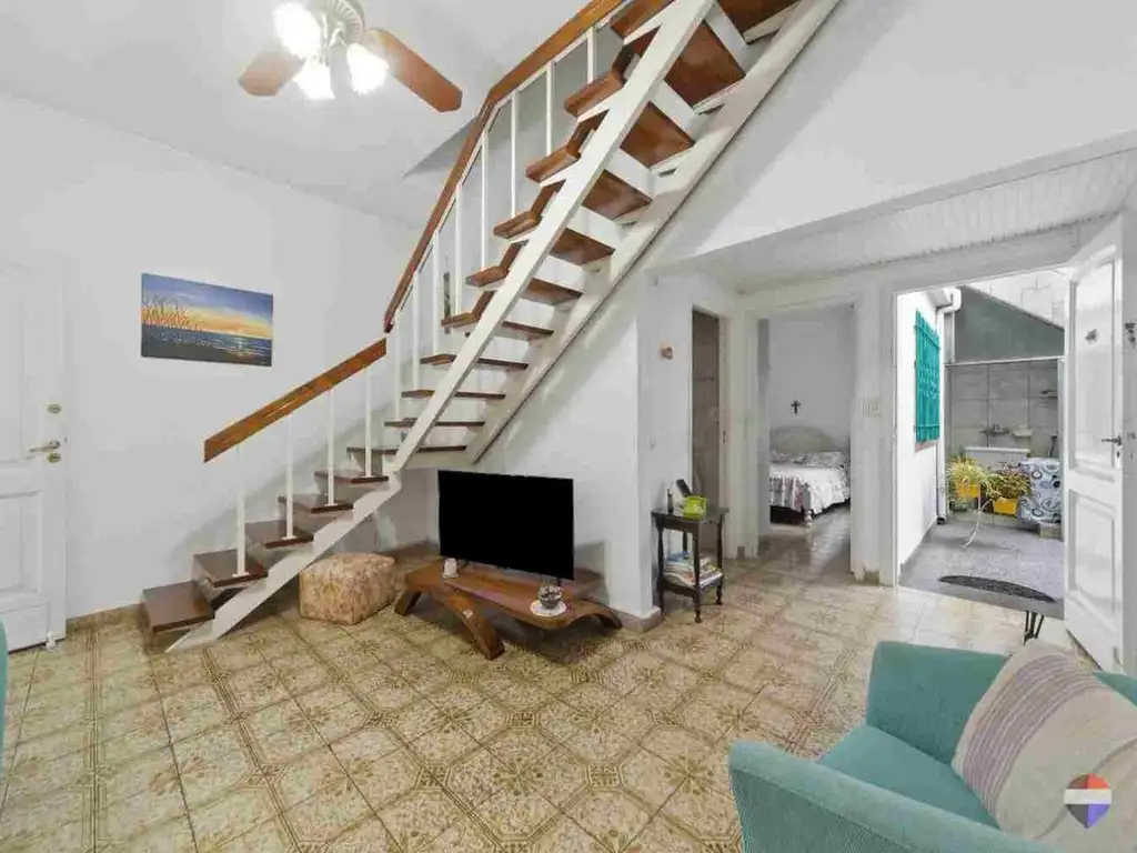 Desde el living se accede hacia la derecha, a un patio con lavadero; y a la izquierda, una escalera que nos lleva a los otros dos dormitorios, equipados con placares de buenas dimensiones; y un segundo baño completo.