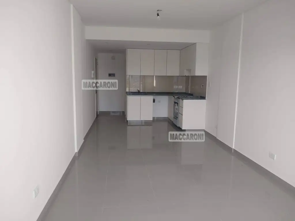 Dpto. de 1 amb a estrenar con balcón corrido. Edificio de 9 pisos con cocina integrada, muebles de primera calidad, pisos de porcelanato en living y pisos flotantes en dormitorios, baños con griferias y sanitarios de primera calidad, mesadas de marmol y bachas en acero inoxidable, frentes de placard corredizos en melamina y espejo, cielorasos de yeso aplicado con molduras, preinstalación de aire acondicionado, ascensor de ultima generación, balcón terraza. Escrituracion y posesión inmediata.